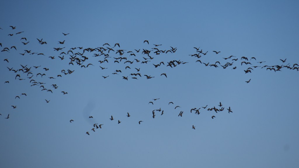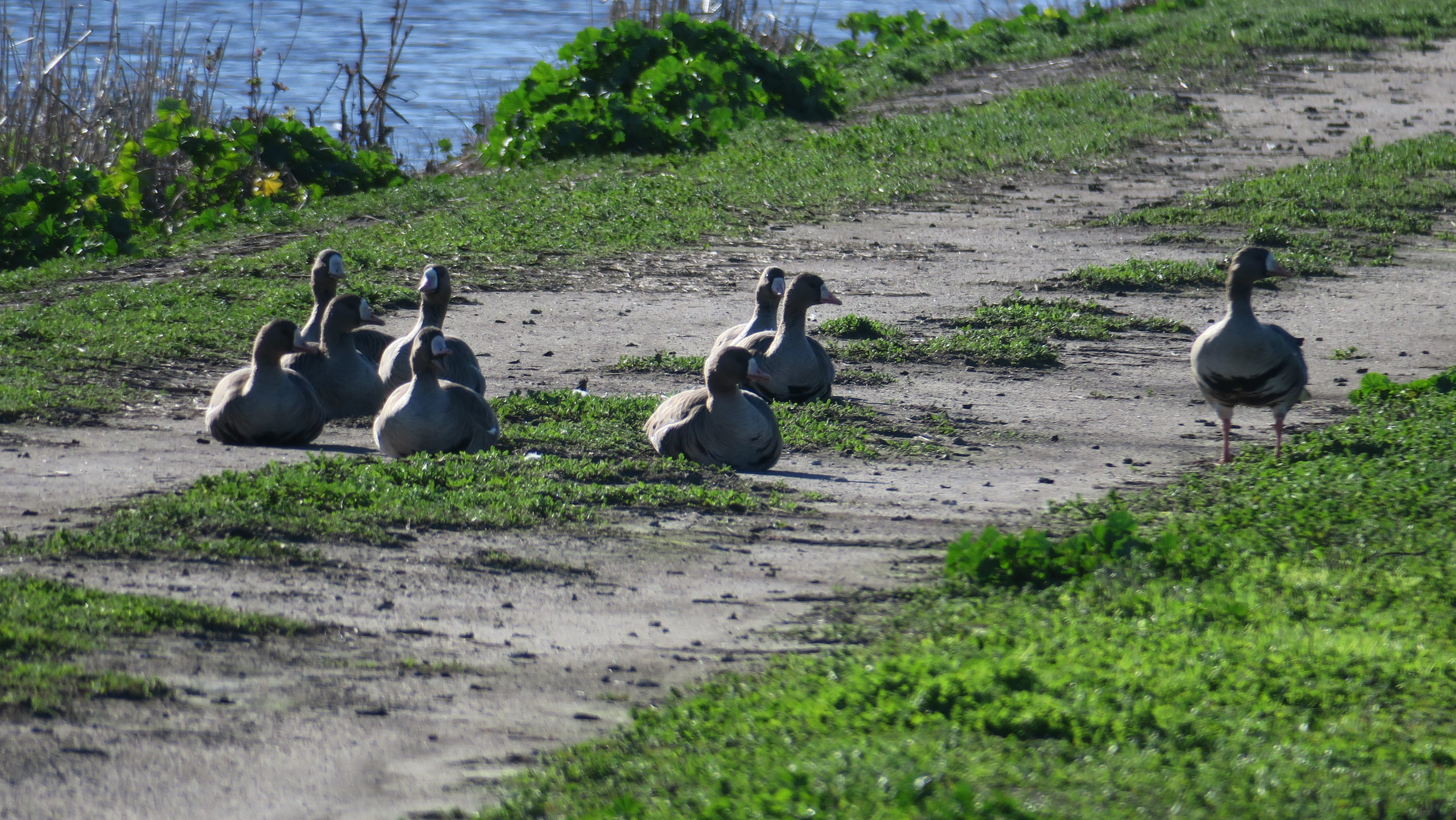 After exploring Woodbridge Road, we headed to Staten Island. The Big Apple, baby! Just kidding. We went to Staten Island, California. This was a similar driving situation–a single road with some pull outs. I drove to the very end and saw a tractor slowly (approx. walking speed) coming at me. This caused me to panic and I tried to turn around which I did in a 6-point minimum turn. The tractor guy was not happy! But it was all worth it, because we saw even more birds, including a very large flock of Cackling Geese!