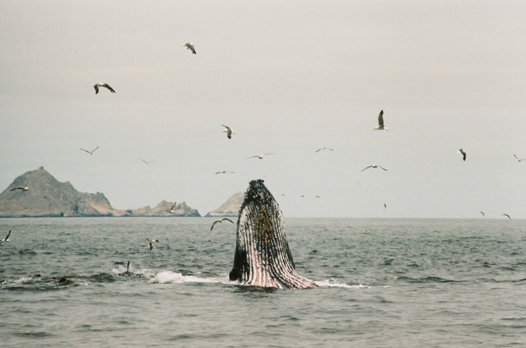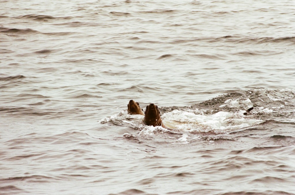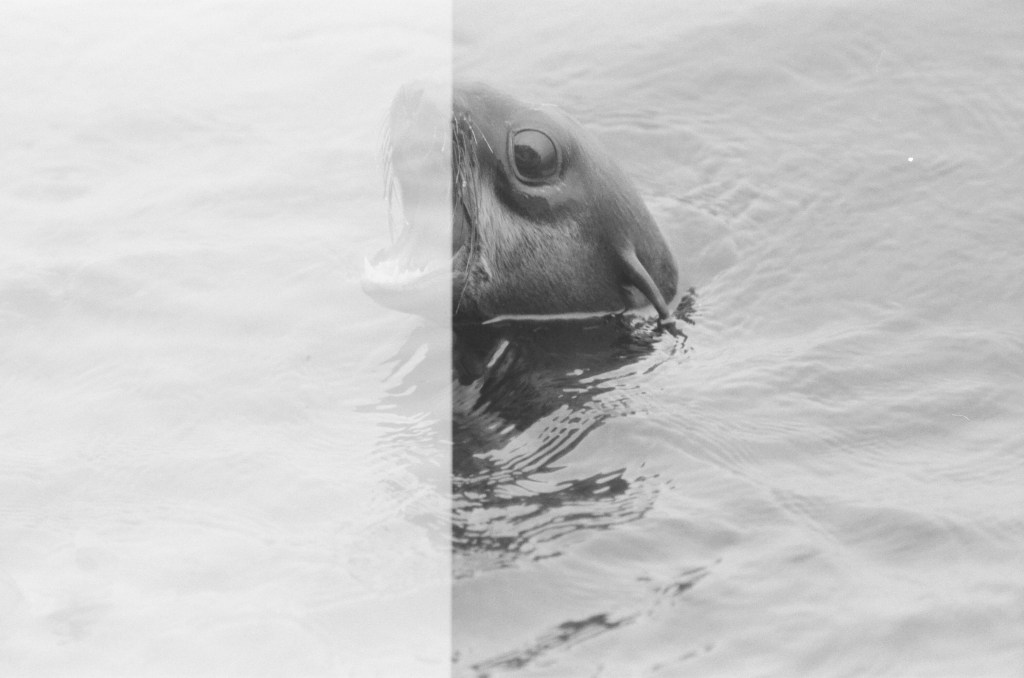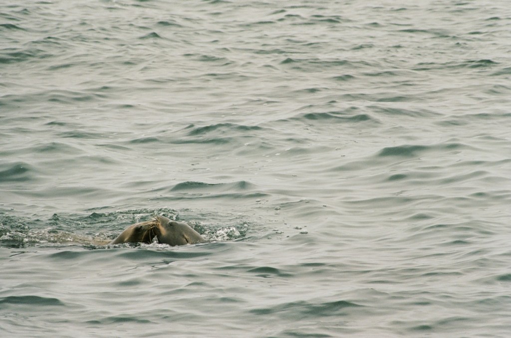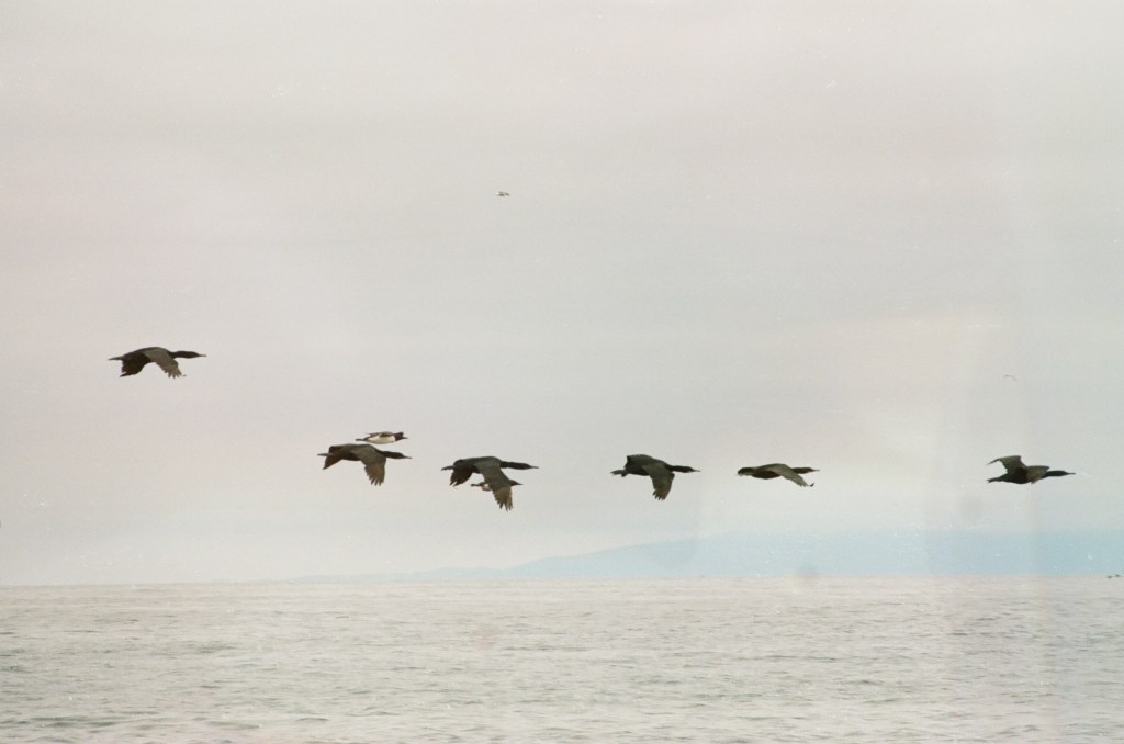 This was my second trip with Alvaro’s Adventures to the Farallons. Last time, we left from Half Moon Bay. I had brought my film camera with a 300mm lens so I was the talk of the boat. Gena, my cousin who went with me, also became boat famous for asking hard-hitting questions like, “What’s so special about this bird?”. Here are some pictures from my trip two years ago, all shot on Ilford HP5 and Kodak Portra film on a Canon AE-1 with a 300mm F4 or something lens. I have to like toot my own horn here– these are pretty good! We also had extra great luck with animal spotting on this trip which was later in the summer.