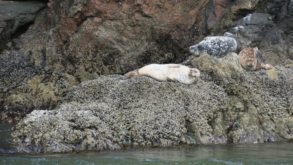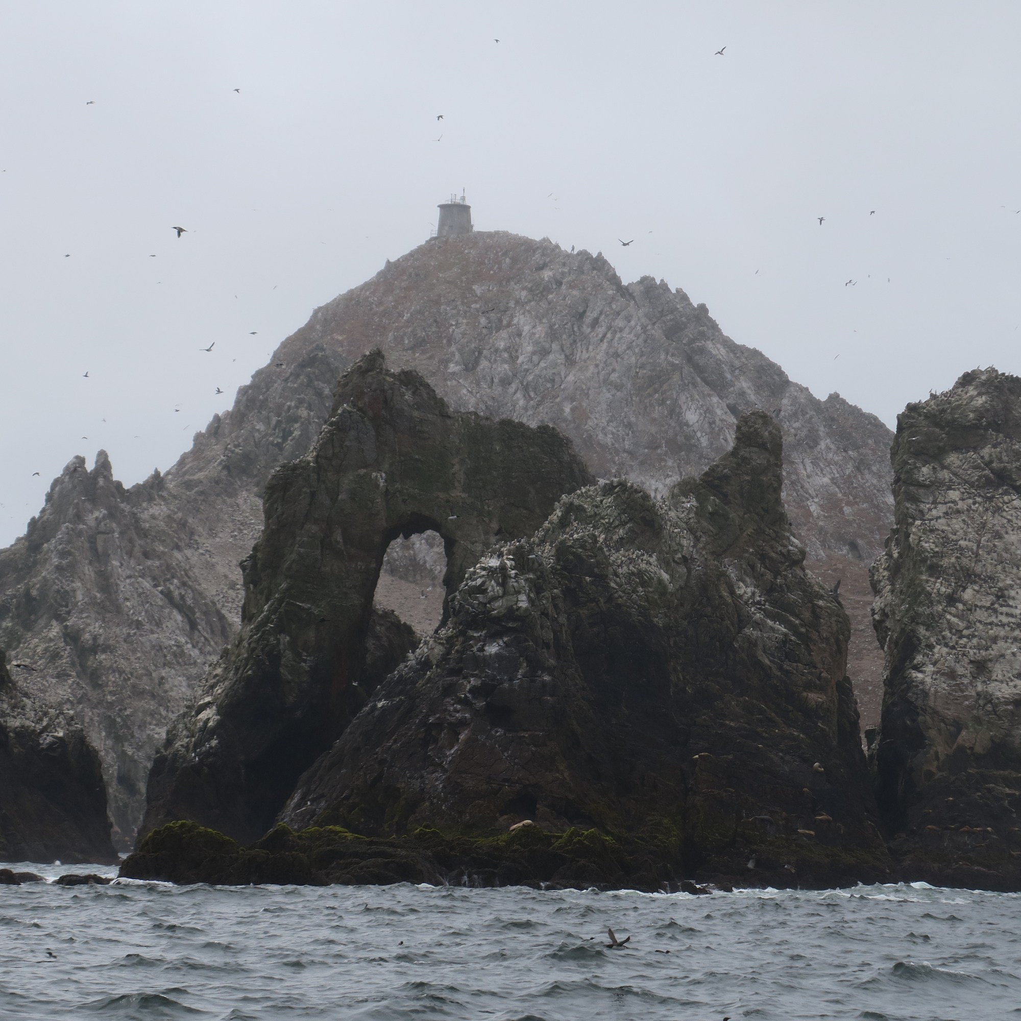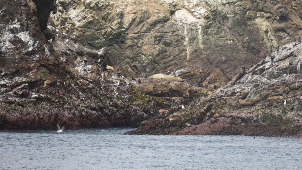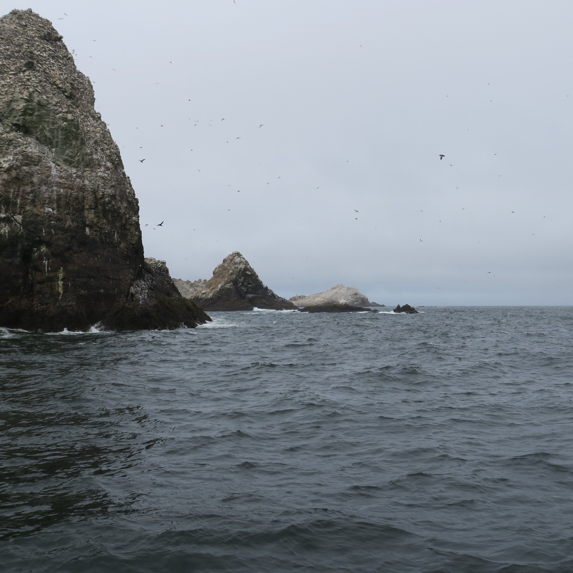 Once we reached the islands, we circled them to spot birds before heading farther to sea, to the continental shelf, where the ocean becomes profoundly deeper and scarier. The islands themselves are strange and beautiful and sound like the audience of an arena concert. There are like hundreds of thousands of screaming pinnipeds and birds. They also smell bad, even from a safe distance! Cool!