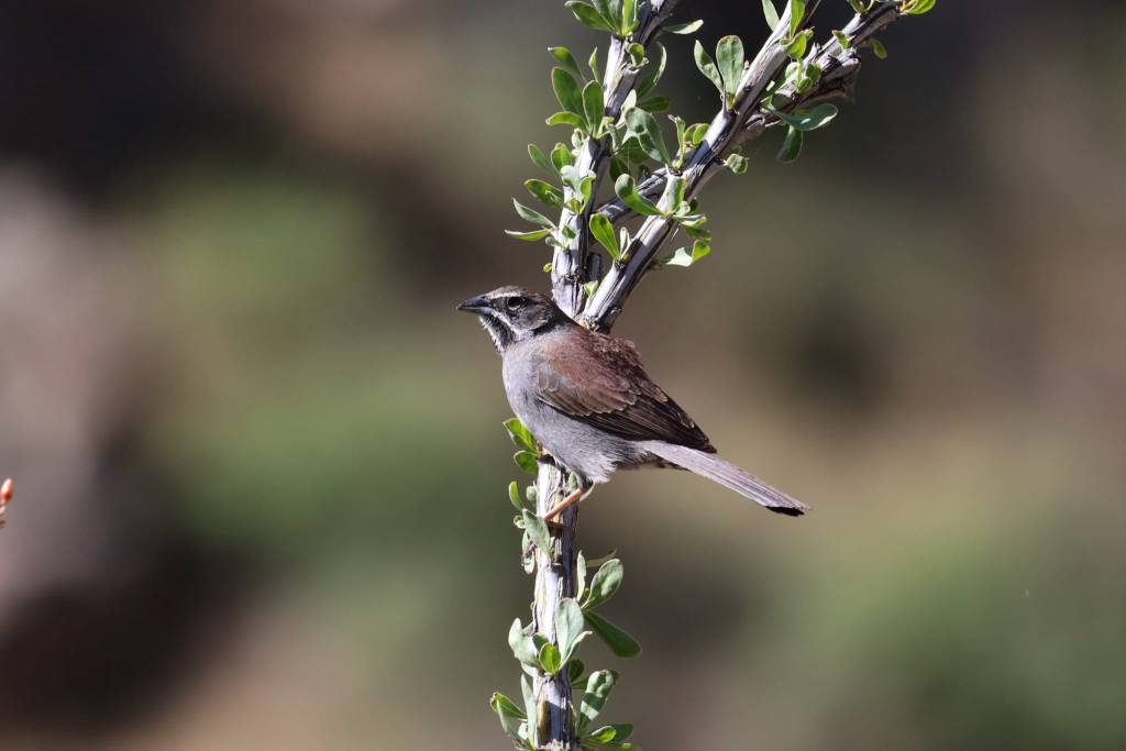 The Five-striped Sparrow is a N2MB who was not known to live in the US until the 1950s. He’s now known to be a rare sight in several canyons in southern Arizona, but no one knows if it was simply overlooked in the past or if it is actually a recent arrival north of the border. We now know that their populations are confined almost entirely within the Sierra Madre mountains in Mexico and SE AZ. We saw two of them and they were really a huge treat. He clearly is more special than all other sparrows and we got to hear him sing!